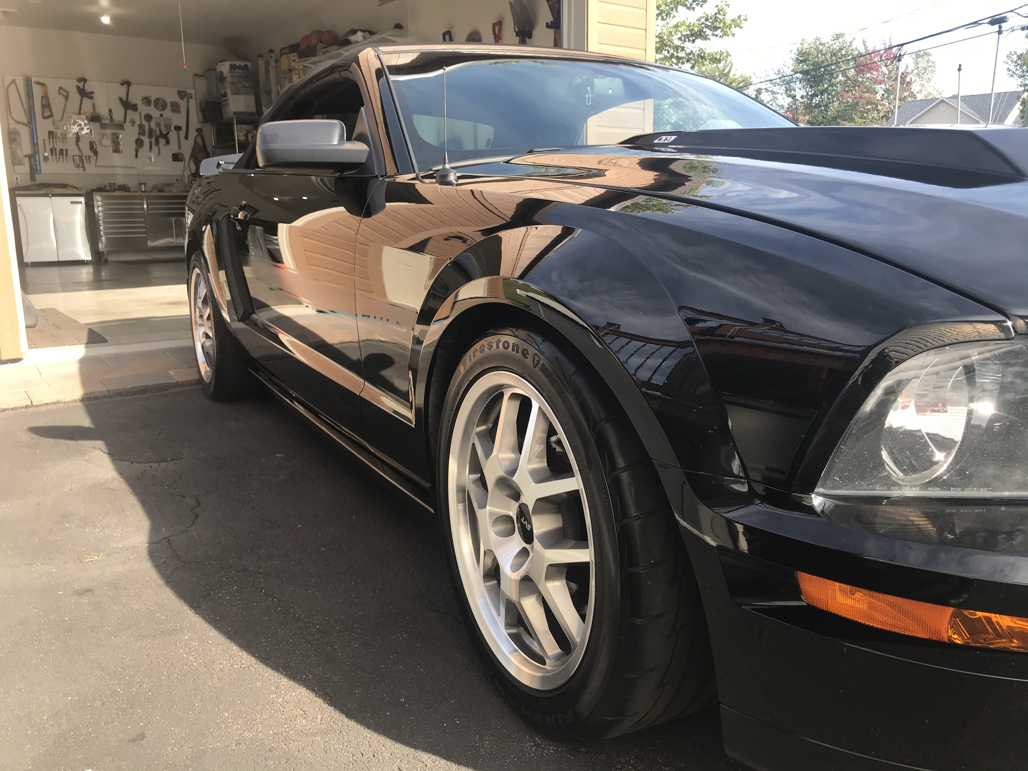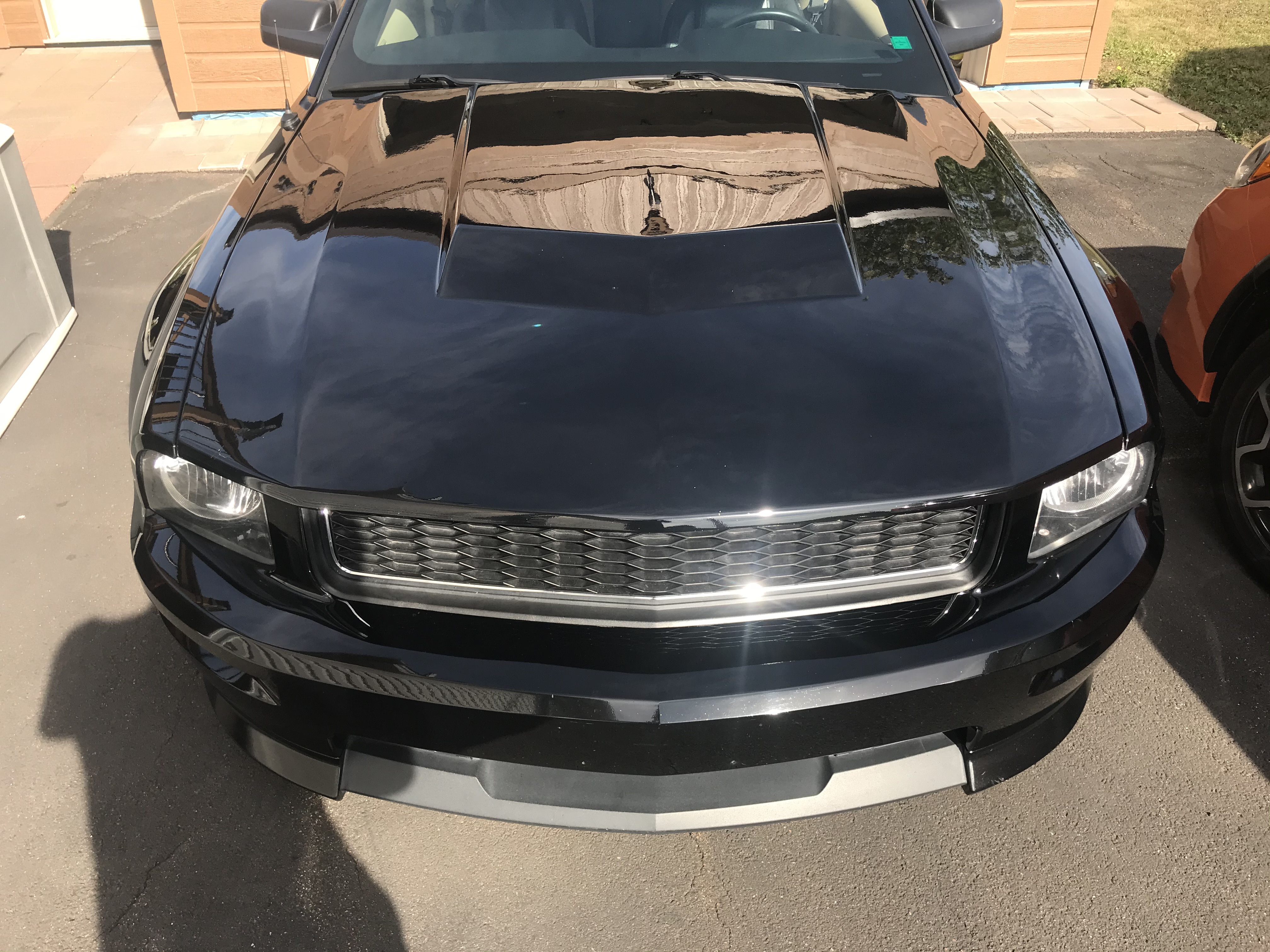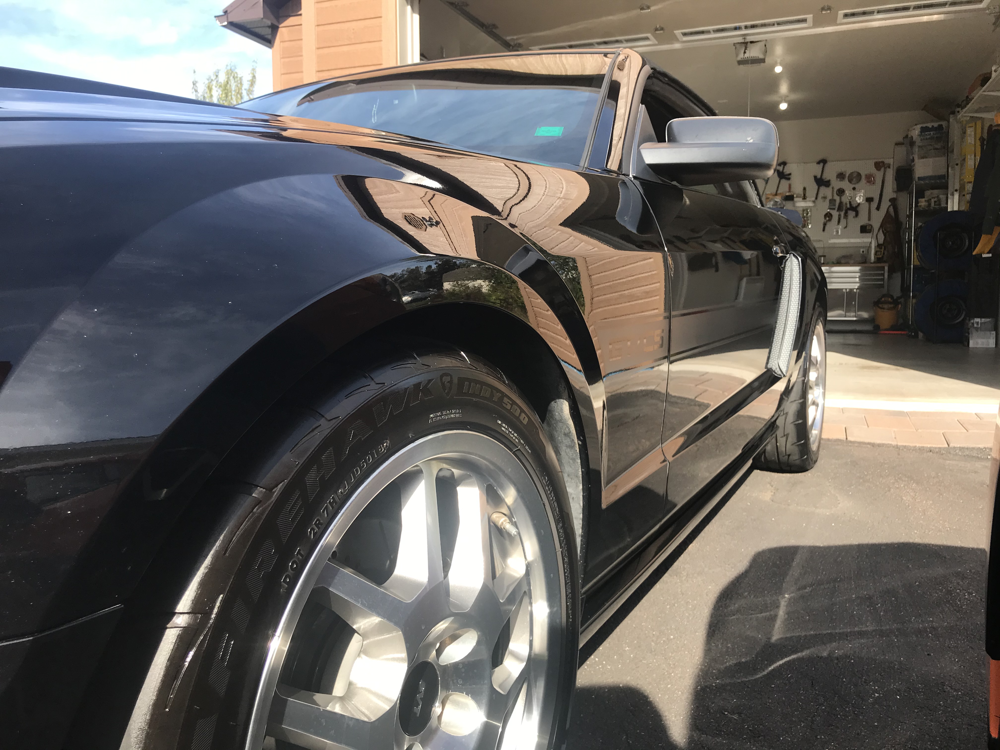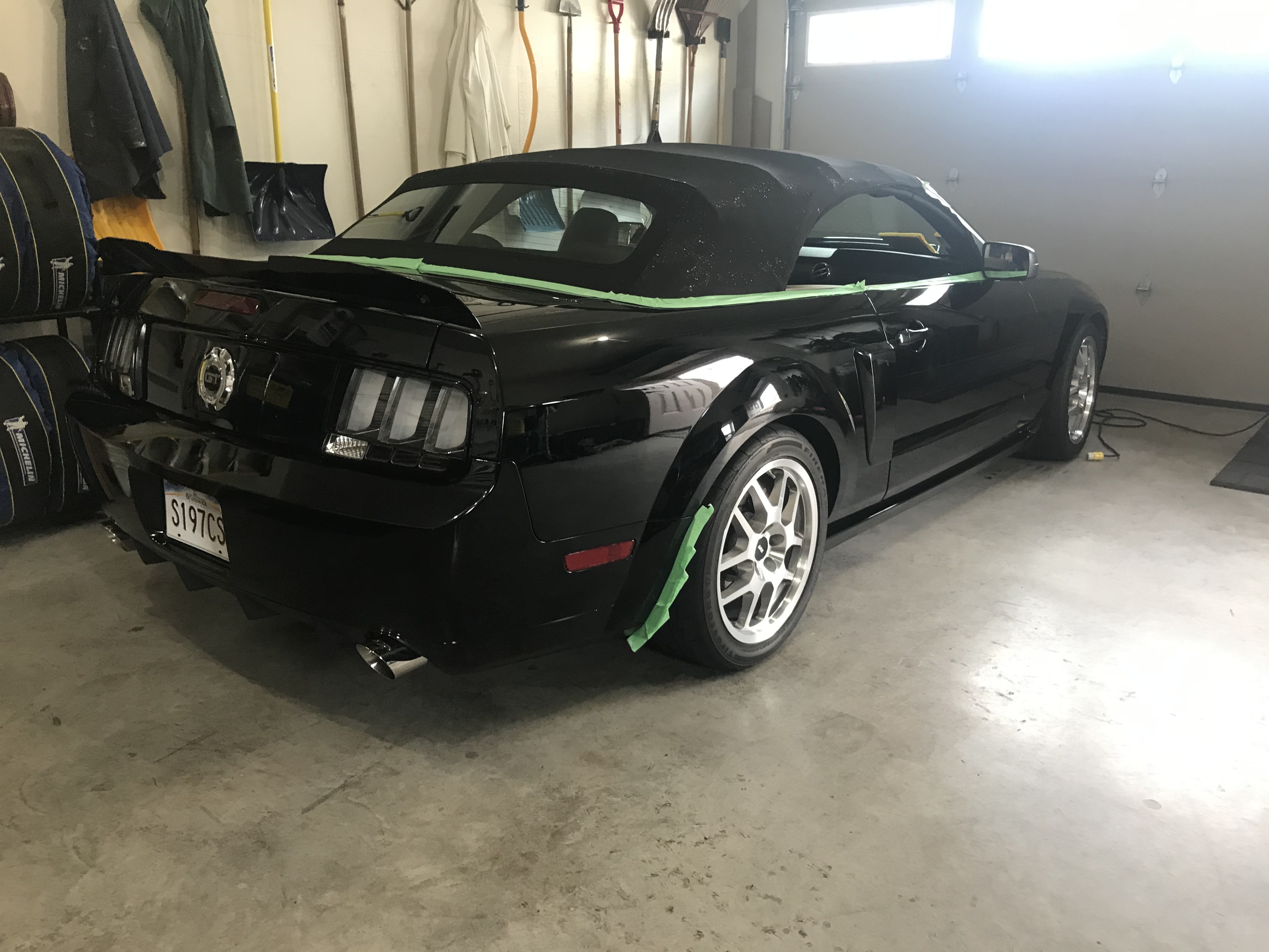 Then on Sunday morning, went back to my in law garage and masked the trims that I didn't want to touch during the polishing process. This included trims around the Vert roof, GT500 Mudflaps , mirror/windshield trim and the Bullitt Grill lower section.