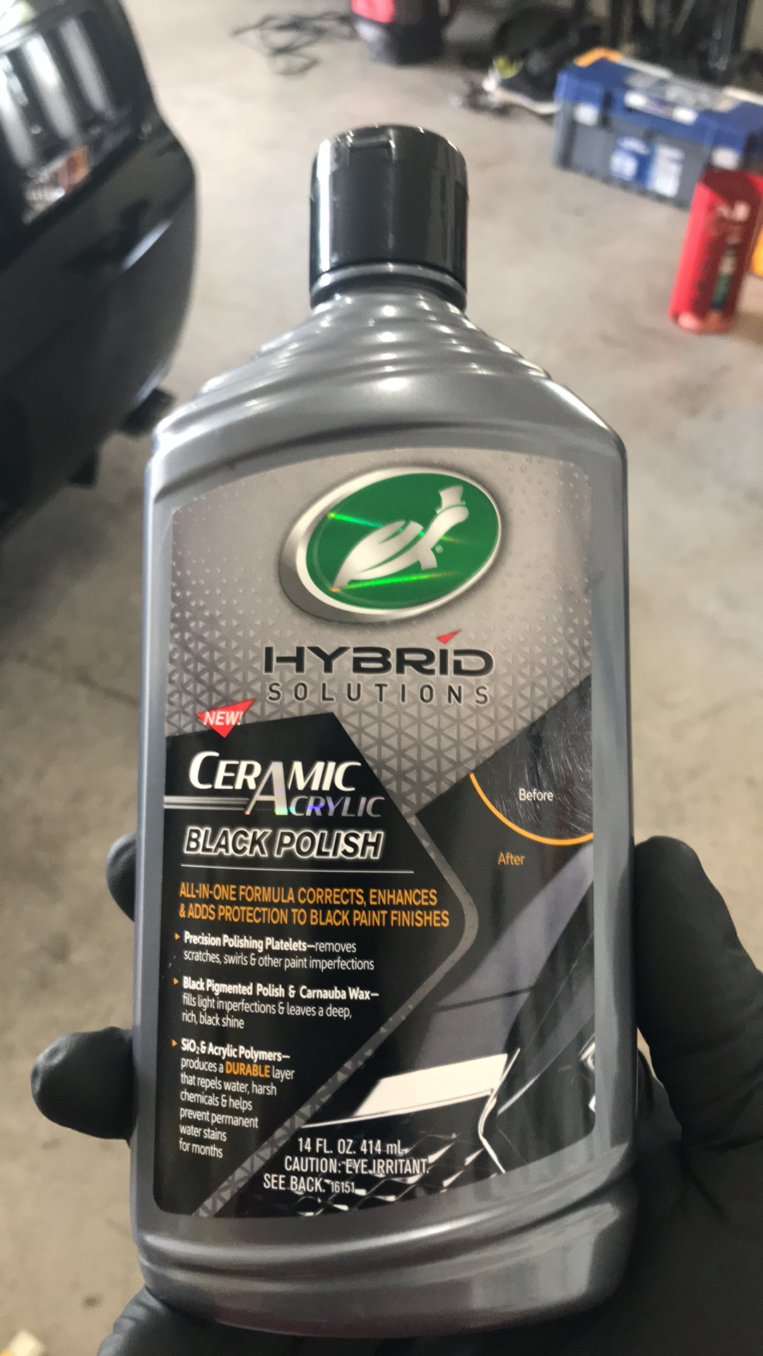 At this point, I was ready to start the polishing process. As mentioned above, the car was only hit with light swirls and very minor scratches, so I elected to use an ''all in one'' polish this time around. I have tried the new Turtle Wax Hybrid Solutions Ceramic Acrylic Black Polish. It corrects the paint, along with installing a protection layer due to being SiO2 (ceramic) infused.