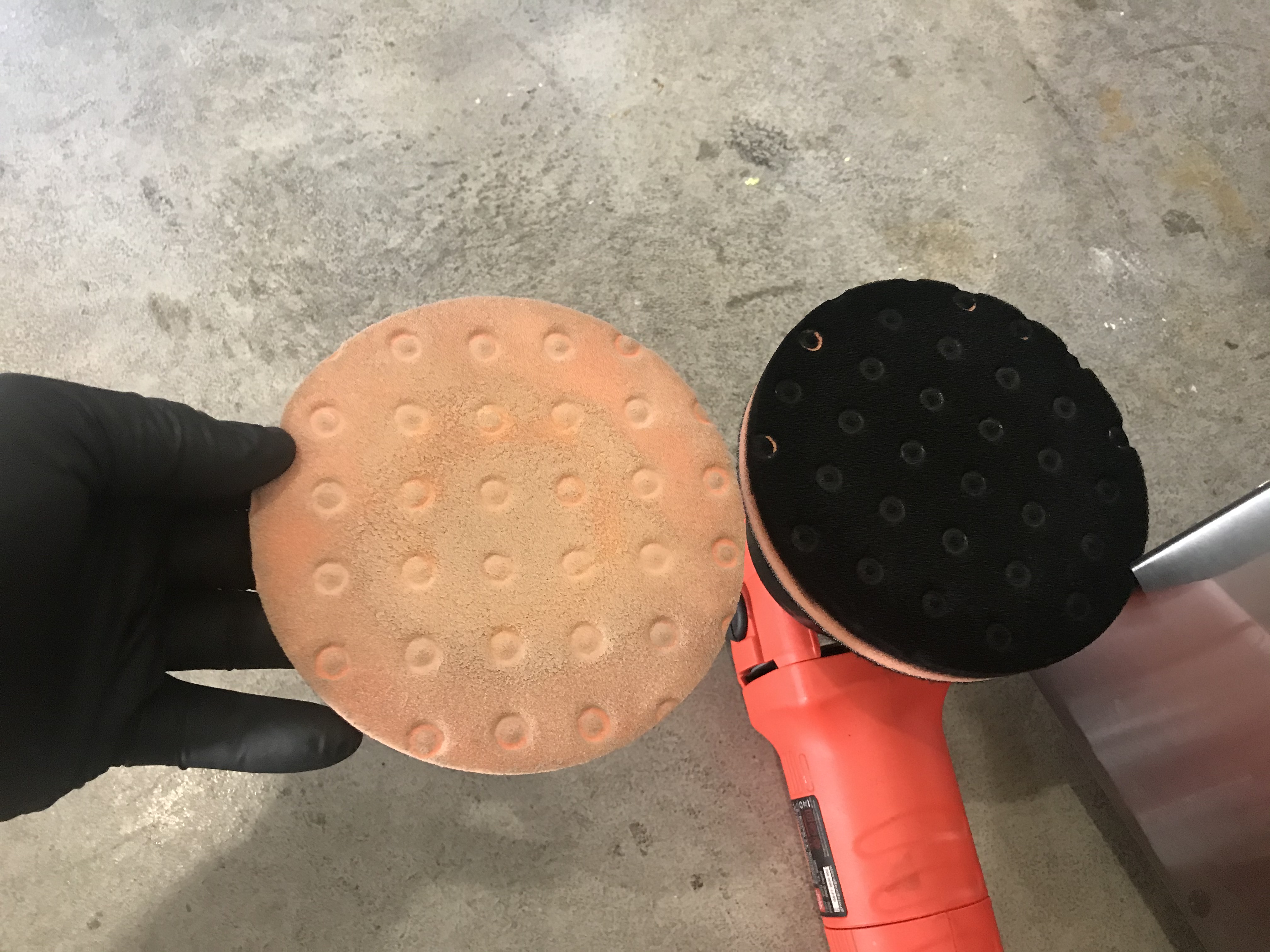 this product has black die, hence the use of gloves during the process and a lot of care. Although being messier than the usual polishes, only mess that was made are the polishing pads used. Been careful with the product and it worked very well for me. Here's a little view of what a pad looks like with my usual polish VS the Ceramic Acrylic Black Polish. Believe it or not, it washed to 80% no dye at the end of the day!