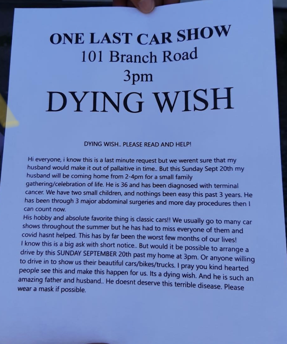 On a side note at rhe end of the trip yesterday we were invited on a run by one of the people on our run to help make a 36 year old dying man's last wishes come trough. He is a huge car guy with a young family. So sad to see. Makes you think how lucky we truly are that's for sure. Glad we were able to put a smile on his face. Thanks to everyone who was able to participate They have another run planned for him today.