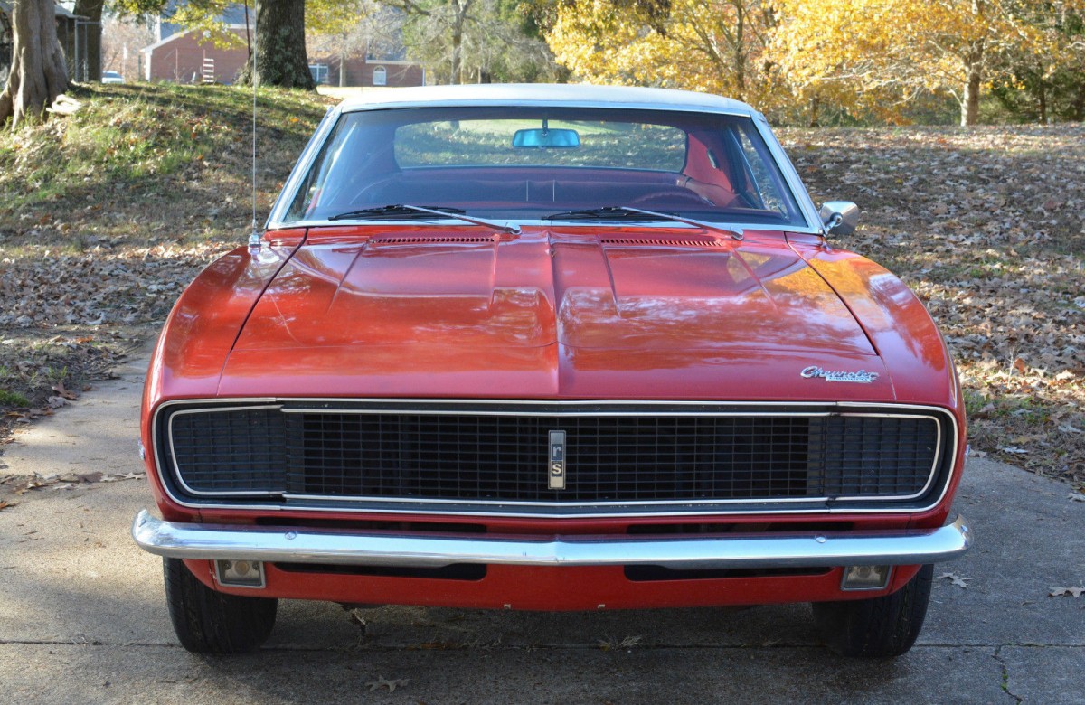 [IMG2=JSON]{"data-align":"none","data-size":"full","height":"390","width":"630","src":"https:\/\/barnfinds.com\/wp-content\/uploads\/2018\/12\/camaro4-630x390.jpg"}[/IMG2] The car is reported to have been repainted “many years ago back to its original Bolero red.” It shows nicely in the photos, although the seller warns there are some nicks and scratches and “if you are looking for a perfect/$60k trailer queen with an award-winning paint job this is not your car.” The Camaro is reported to have been purchased new in March 1967 in Tampa, Florida but spent the majority of its life in the Knoxville area. It’s a true southern car that’s “never [been taken] up and down salty roads or subjected to salty climates.” Its frame rails, body, floor pans, rockers, and all “critical areas” are nice and solid, although there is a small amount of rust on the lower portion of the front fenders and some “slight bubbling” under the vinyl top. The hideaway headlights are reported to be in working order but from the photo above, there seems to be an alignment problem on the right side. Photos show a series of holes drilled in the trunk lid, however, the seller has since finished the original owner’s job of adding a rear spoiler.