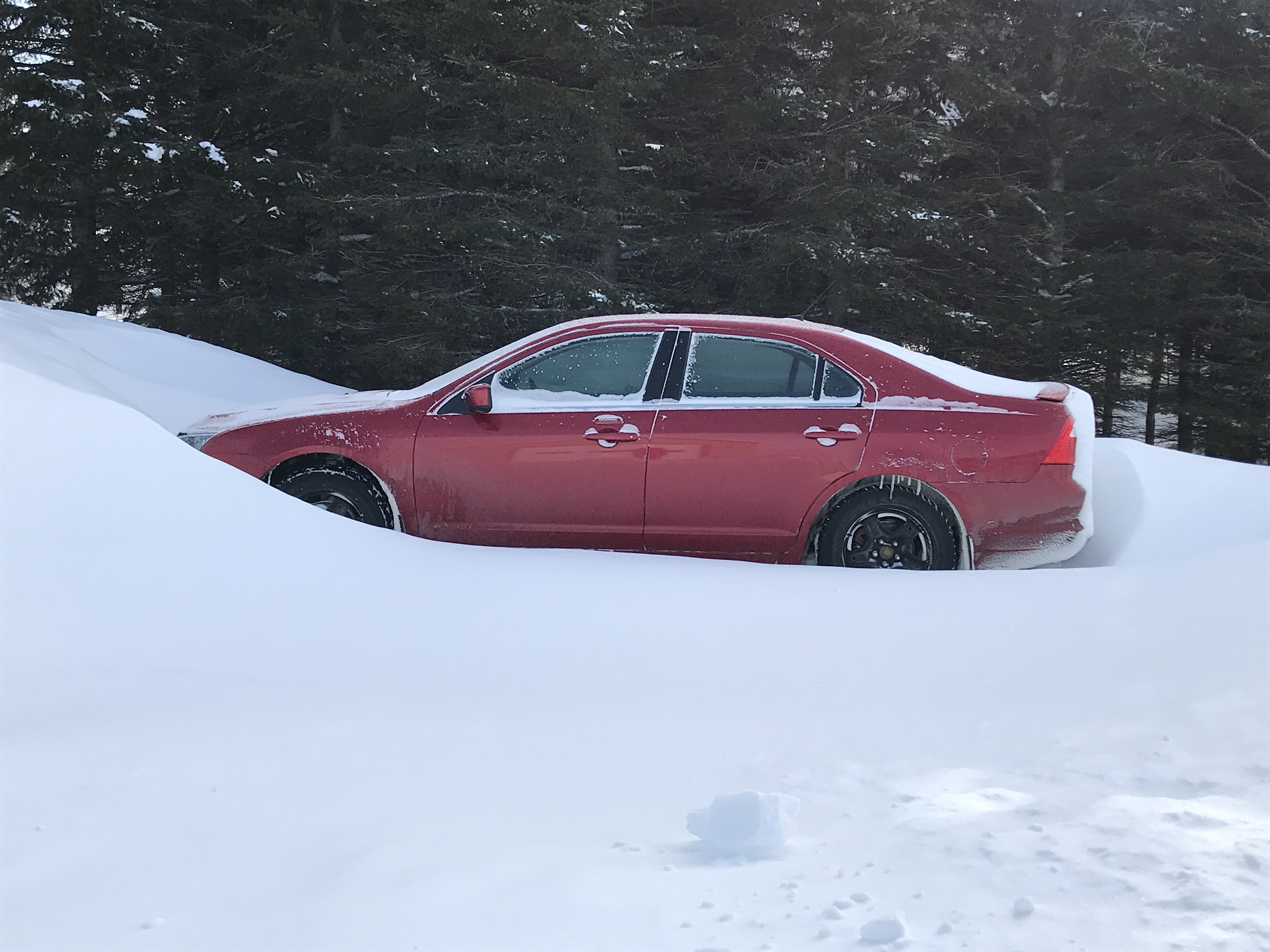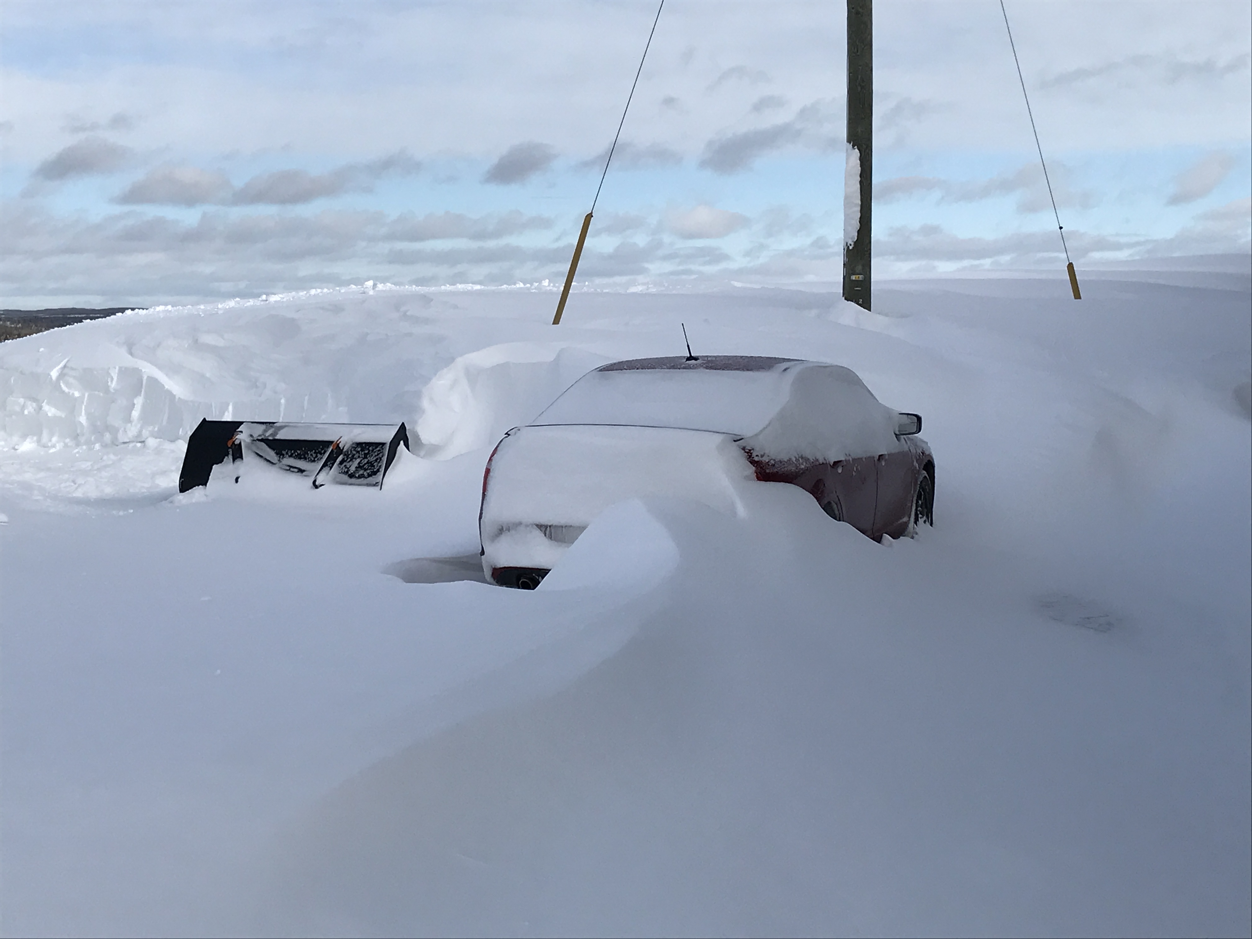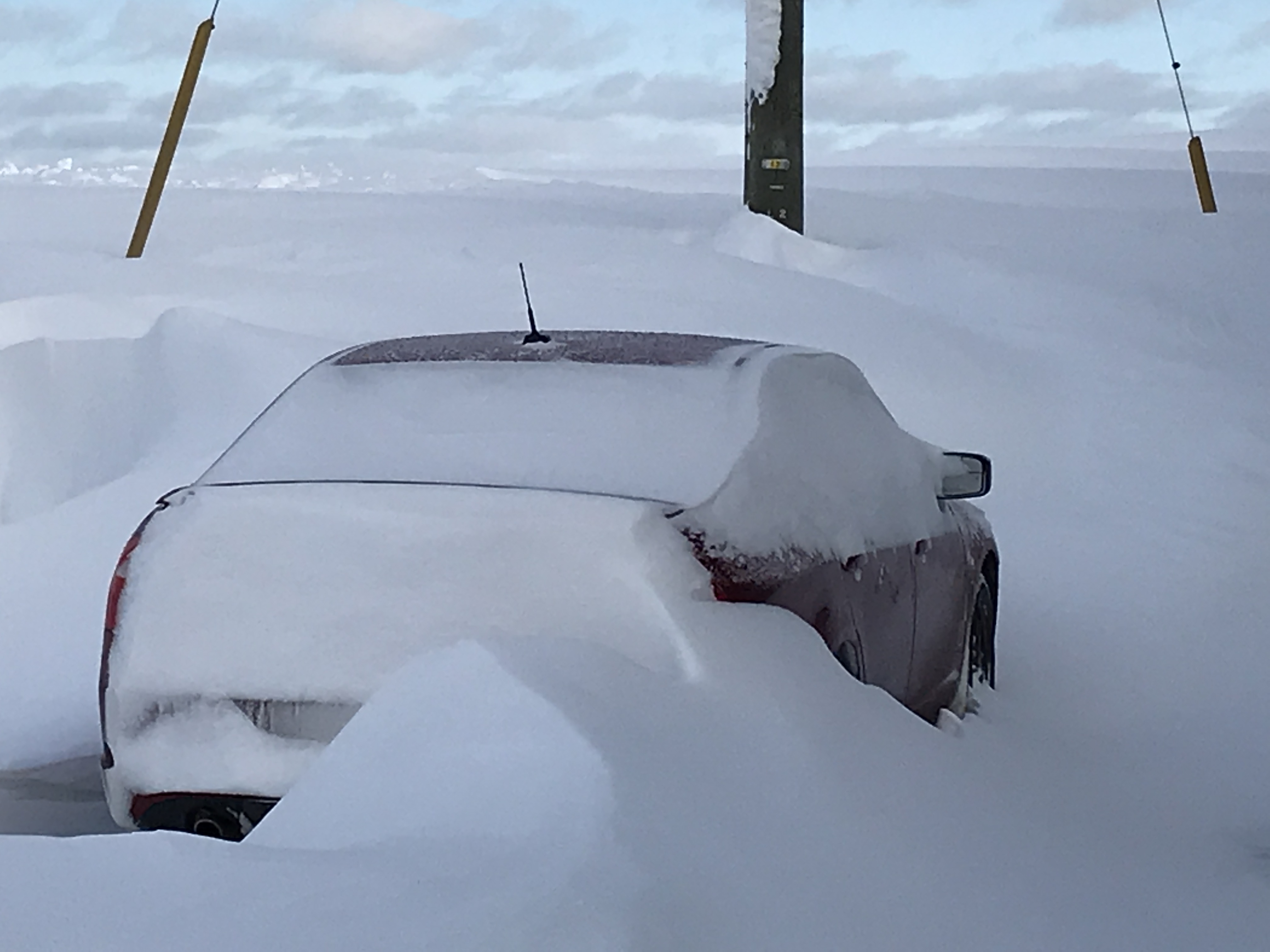 What direction is your car pointed? North? Alot of snow, for sure!A few pics showing the power of wind during snow storm of Feb. 8th.