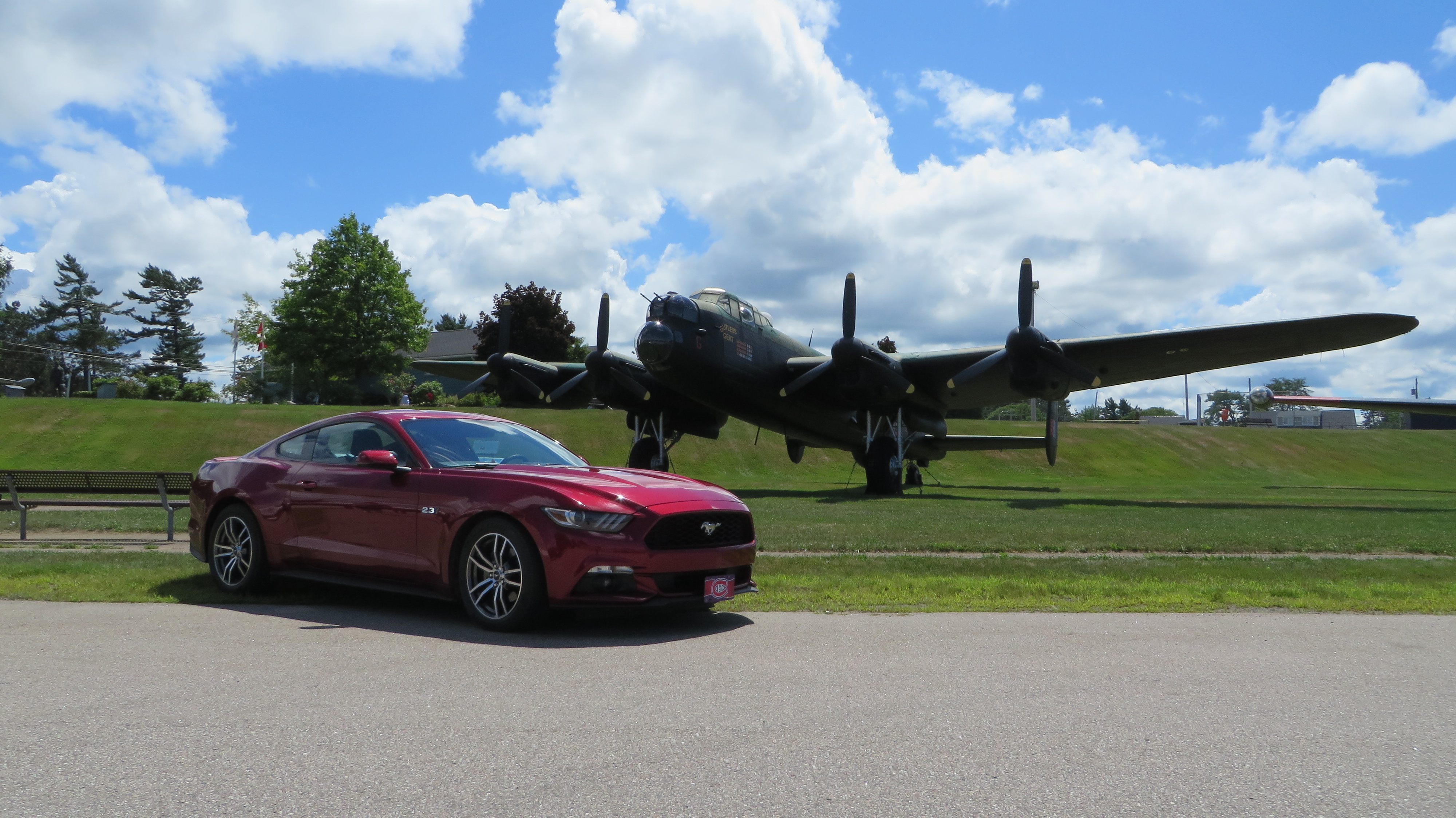 you need to sneak in there and park Mustang right under nose of that plane.Our Timmies run today was to Greenwood NS. They have a dozen planes on display outside the base. Here is the Lancaster.