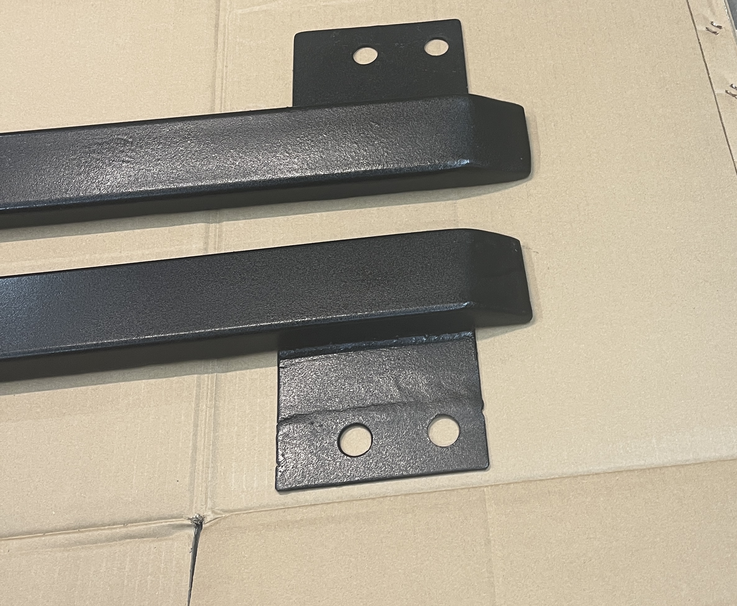 Did very good job paint also niceJacking rail build is now compete - I started with some 2x3 rectangular tube - had to cut it to match the contour and depth needed to be just lower than the pinch weld area and match the slope of the inner rocker ledge. A bit of time spent learning the plasma cutter and all went well. Primed with 2K epoxy then covered in bed liner . Hoping to finish the install tonight. I rounded the front edges and added a brace on the rear of both supports
